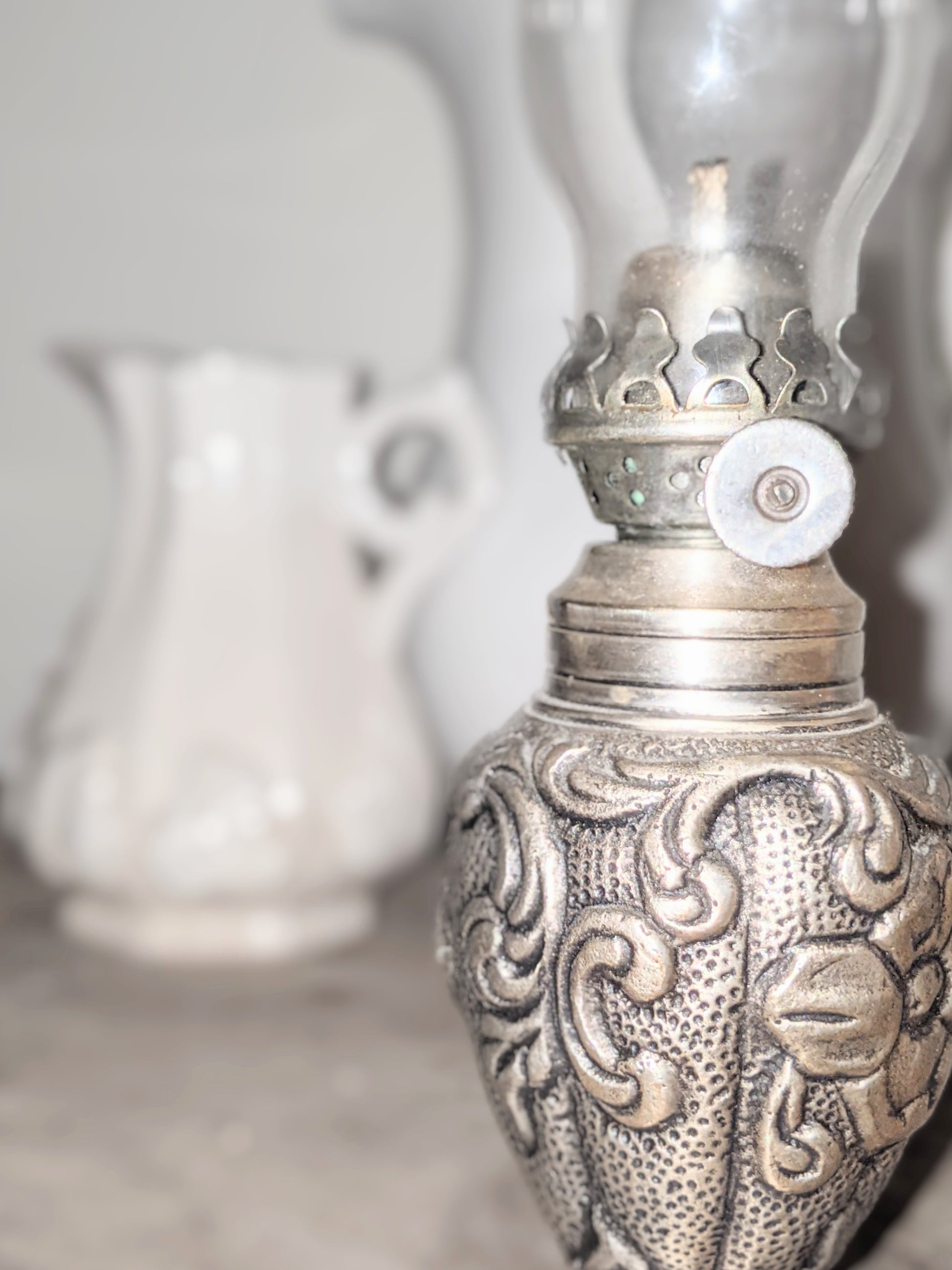 Light up your country home with a Mini Floral Oil Lamp. This vintage Frances Le Mont piece is perfect for adding a pastoral touch to any room. Illuminate your life with style!