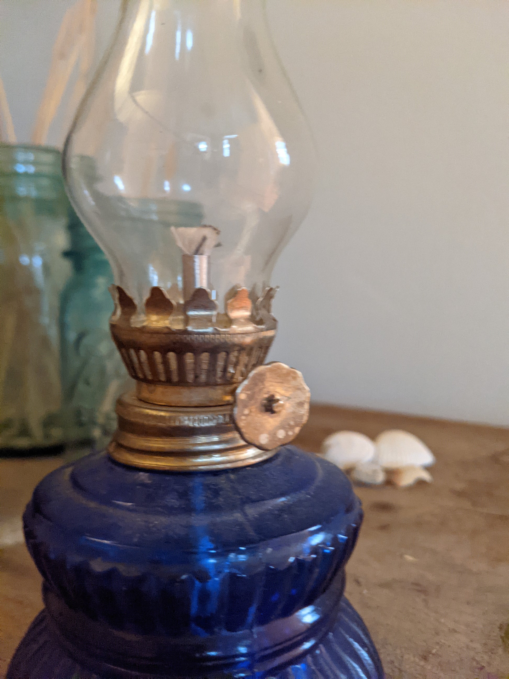 This lit-tle guy packs a big punch - the Mini Vintage Cobalt Blue Kerosene Oil Lamp! With its demure size, coastally cool cobalt blue and fluted glass shade, it'll bring a hint of coastal flair to your home! Just add oil and light your way.
